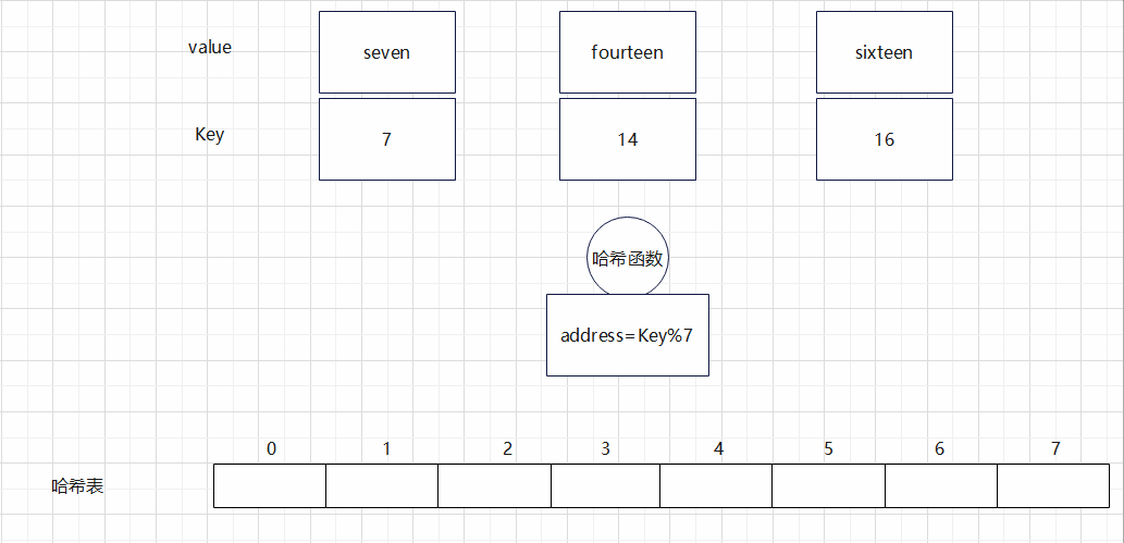 (7, "seven")准备插入哈希表。 - 通过哈希函数计算,得到目标下标为